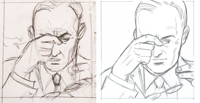 Questa volta sto lavorando in modo diverso. Per prima cosa ho disegnato le tavole velocemente su carta da fotocopia, senza badare troppo ai particolari, poi le ho riprese su carta più spessa, facendo le vere e proprie matite. Quando le avrò finite tutte e saranno approvate dagli editor le inchiostrerò e metterò i retini.